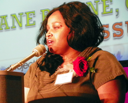 Cleveland Collinwood High School student Imane Blaine recited her poem Pressure about student peer pressure.